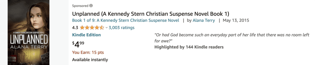 Alana Terry: One main reason is that people are already browsing Amazon. If they’re on the Kindle store, they’re already browsing for a book. Your ads will be seen in the Kindle store when people are already searching for books.